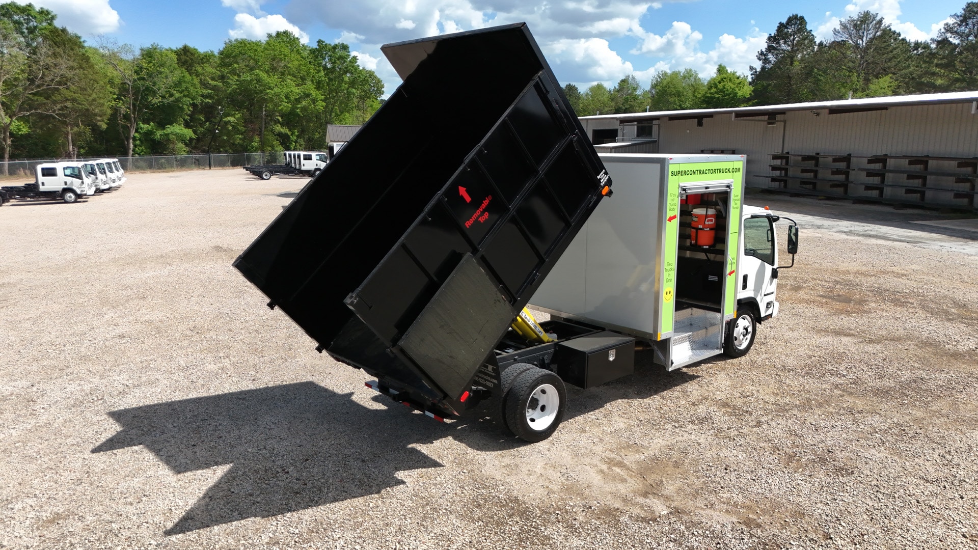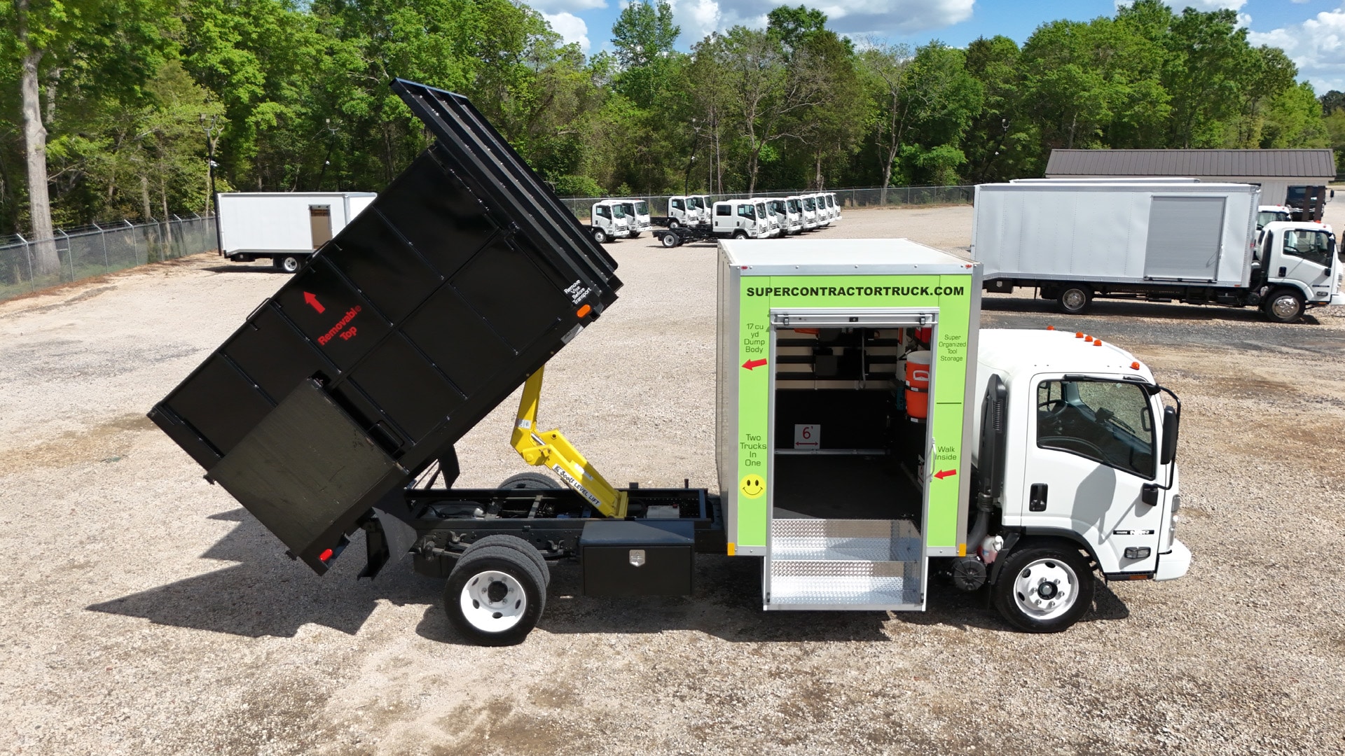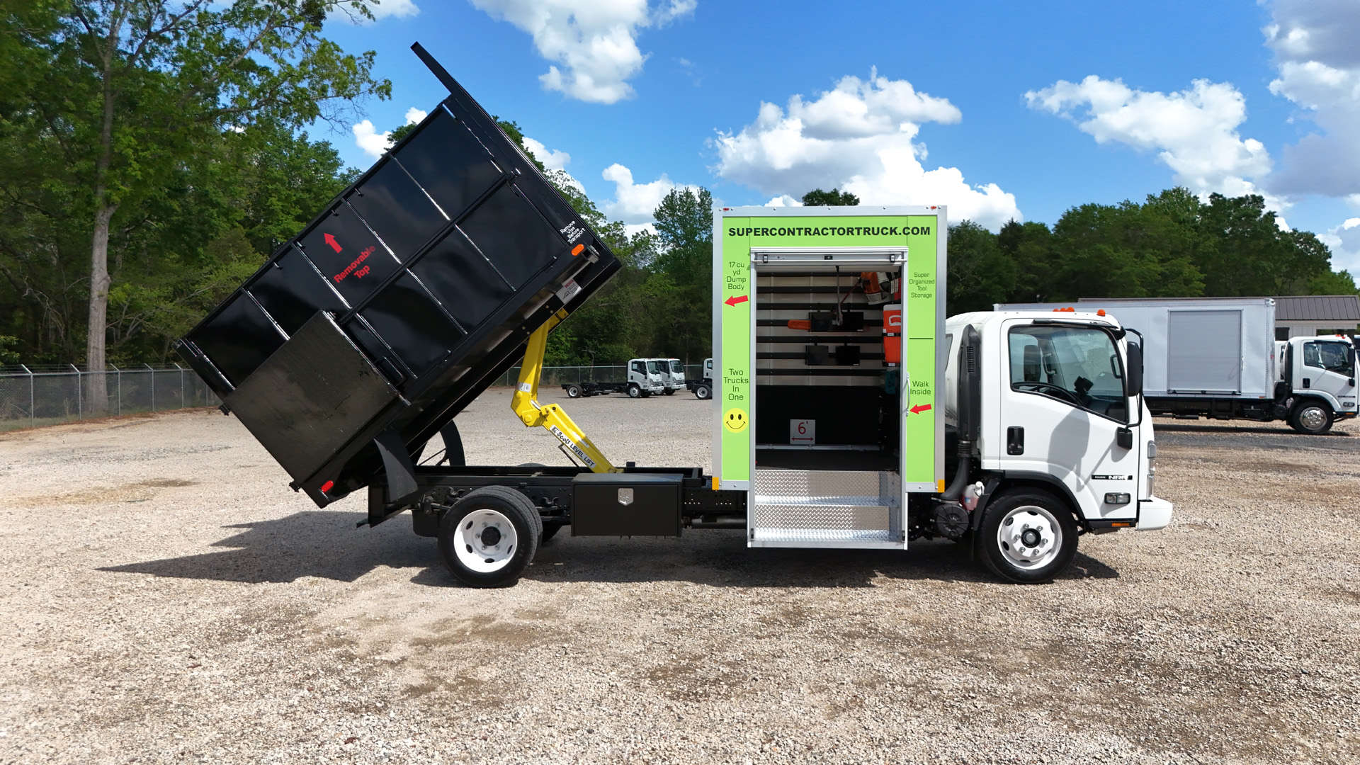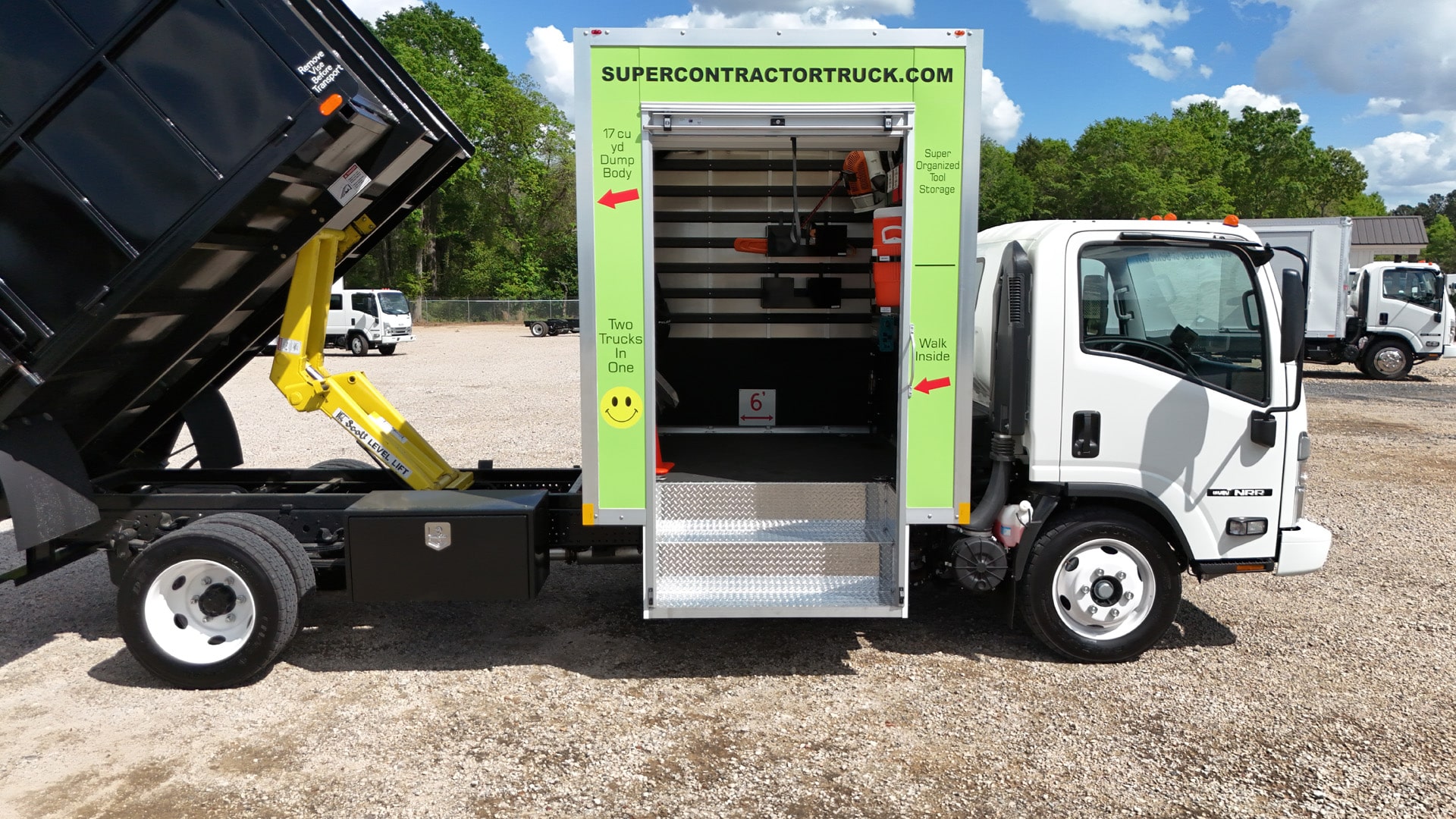 The truck is built with a roll up side door on the enclosed body, but a fold down loading ramp with a weight capacity of 4,000 lbs.so you can drive a mini loader inside the enclosed tool storage area makes this one of the most versatile models on the market.