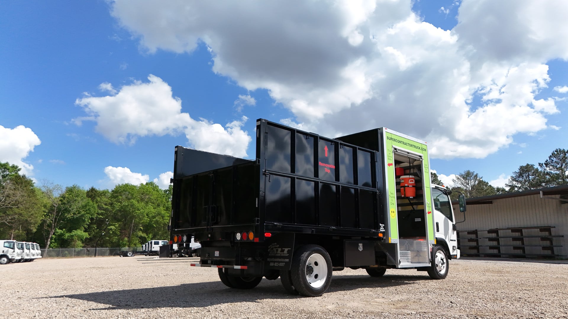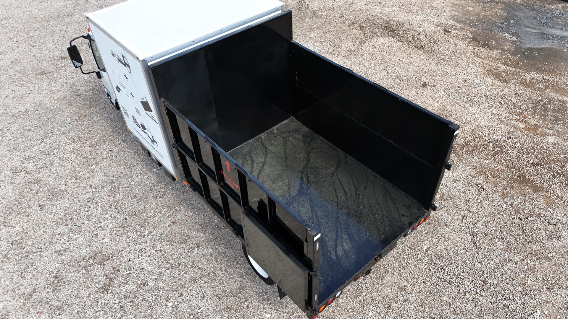 And this is something really unique with our dump bodies. You can remove the chip top lid. You can remove the upper section of the sides, and you can actually fold down and load from the side on this dump body. Pretty cool.